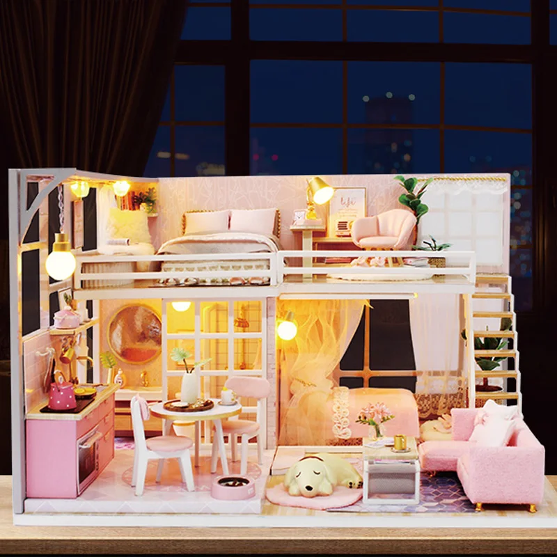 Special For You Diy Doll House Wooden Doll Houses Miniature Dollhouse Furniture Kit with Dust Cover Toys for Childr