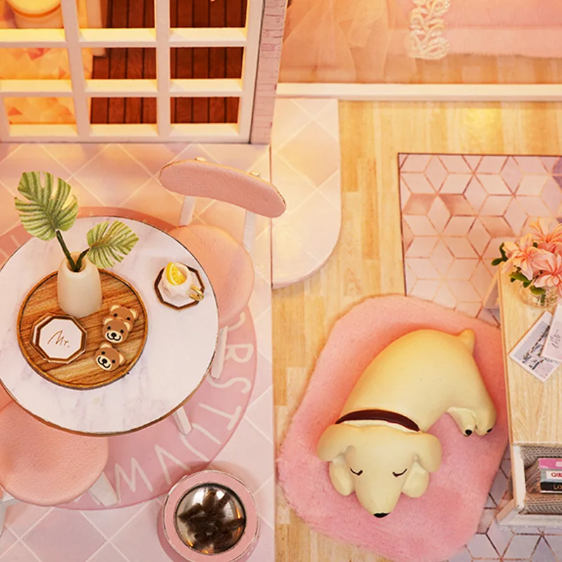 Luxury Sweet Villa Furniture Dollhouse Miniature Diy Kit Remote Control Led Lights Wooden Toy Dolls House Christmas Gift : Click here